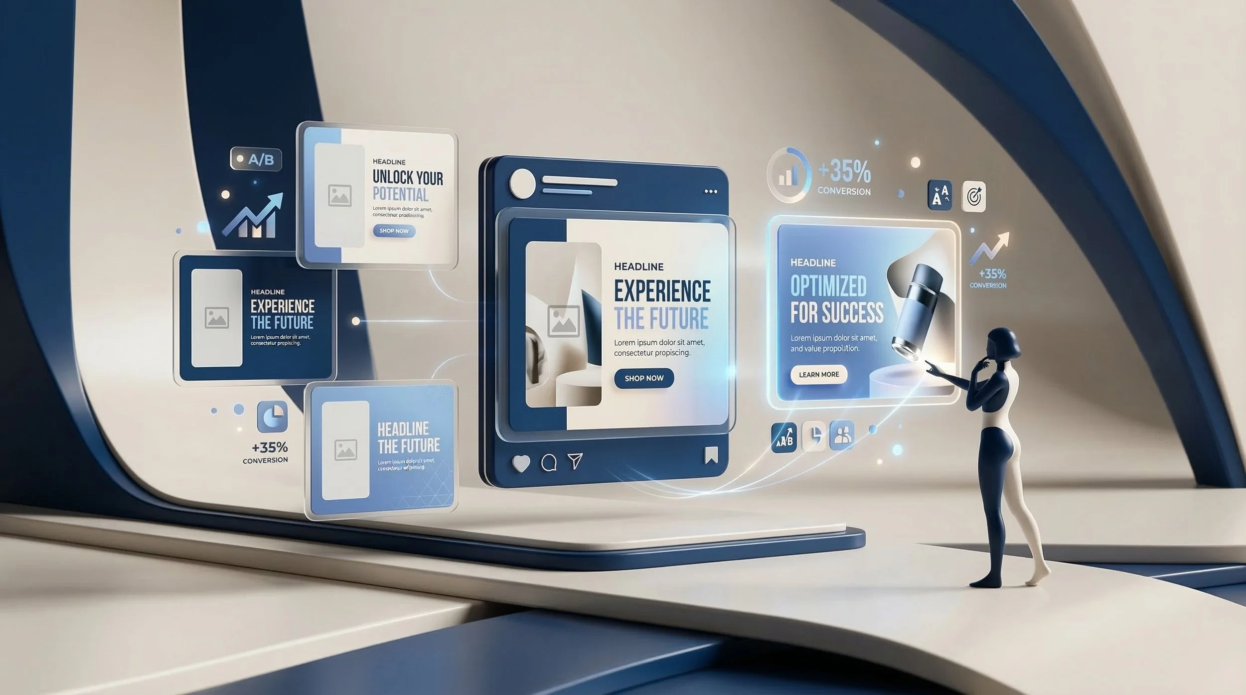• A/B testing of copy, visuals, and offers